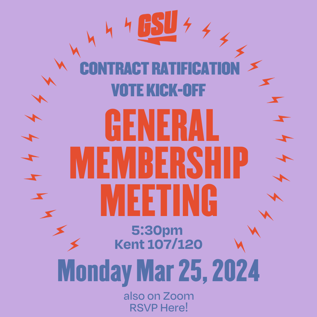 The bargaining committee is thrilled to announce a full tentative agreement between GSU-UE and the University. After nearly 2,000 of us signed the strike pledge in under a month, the University made huge movements on our priorities. It is finally time to vote to ratify our contract!